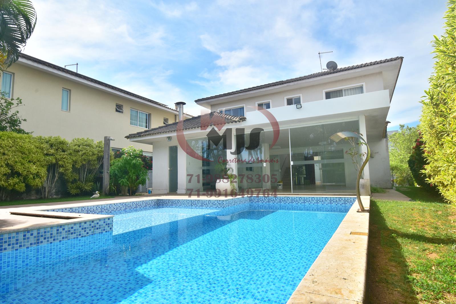 Ótima casa a venda Alphaville Salvador 2 , nascente, com 4 quartos(um térreo) sendo 3 suítes, master com closet e varanda, ampla sala de estar e jantar, varanda gourmet com churrasqueira integrada a piscina. Sala de TV com tela de retroprojeção. Piscina com cascata e deck. Área verde com grama e paisagismo. Copa-cozinha com passador para varanda gourmet. Área de serviço, dependência de empregada. Garagem coberta para dois carros. Ar condicionado em todos os quartos, armários, projeto de iluminação, fino acabamento. Área do terreno: 558m². Área construída: 225m². IPTU: R$ 3.000/ano. Taxa mensal de condomínio: R$ 1.850